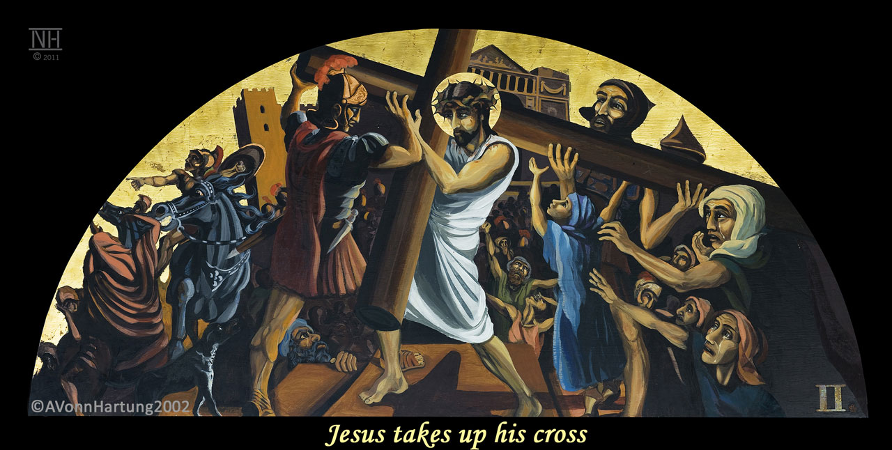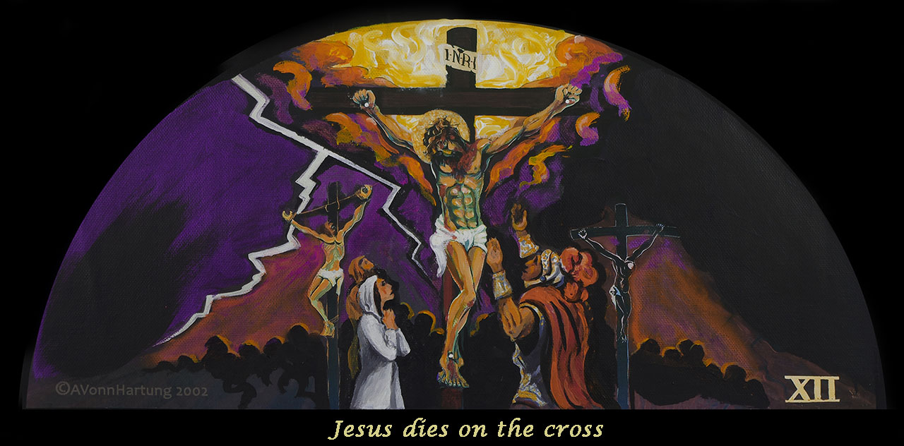 They express a perspective that emphasizes the effect Jesus had on those present during his ordeal of carrying his own cross to his crucifixion on Calvary. As the bystanders are pulled into his suffering we follow by observing closely, the actual Revelatory conversion of the principal Roman soldier. We see how the outpouring of grief and compassion of others around him begin to melt away his own cruelty and indifference.