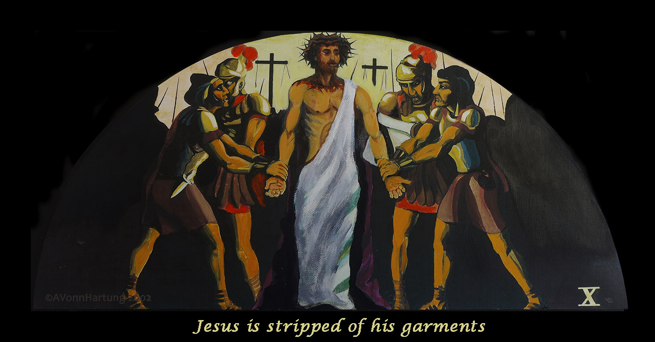 THESE STATIONS OF THE CROSS paintings show the process of conversion as Jesus was put to the test and tormented. His persecutors came to understand who he was.