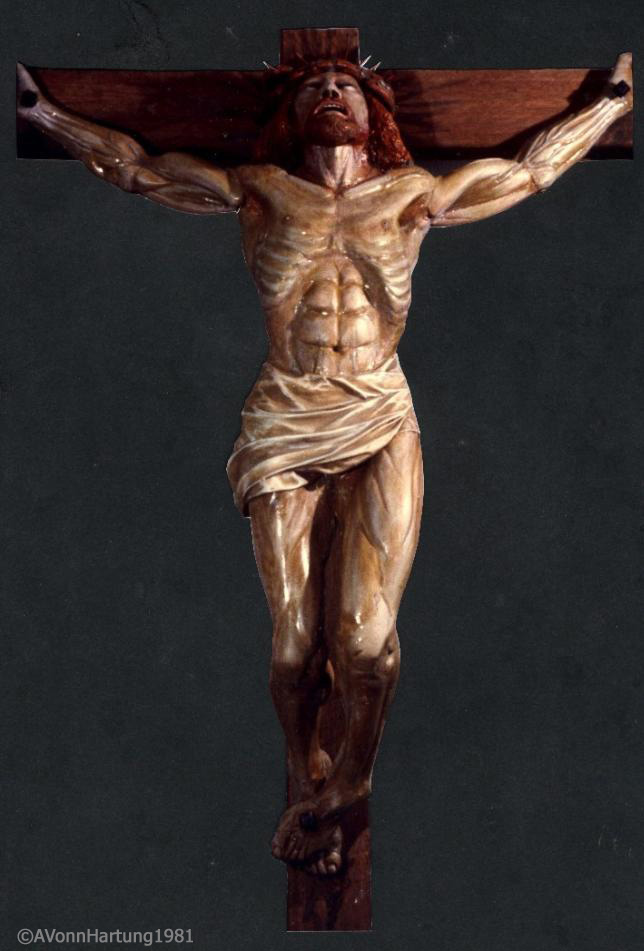 A life-sized woodcarving of Christ on the crucifix, based on a doctor’s detailed description of how a crucified man would die, used to hang in St. John’s Church in Montville. Some parishioners, says Hartung, found it too graphic to contemplate.